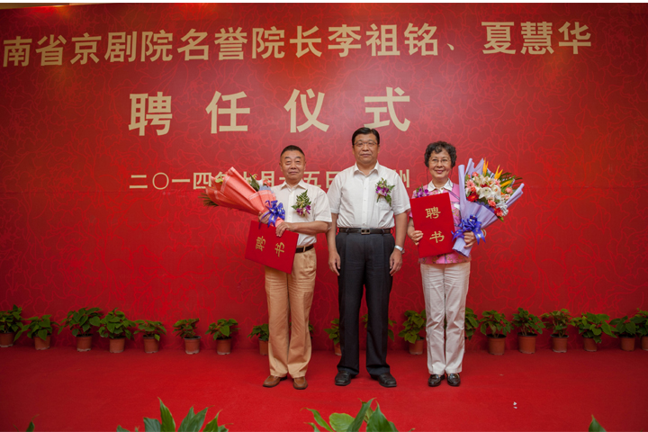 7月15日,省委常委、宣傳部長趙素萍,副省長張廣智等領(lǐng)導(dǎo)出席河南省京劇院名譽(yù)院長李祖銘、夏慧華聘任儀式。